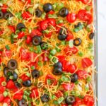 It’s football season! Who’s excited?? I’ll be honest, we aren’t a die hard football family. Gasp I know. My husband would rather do dishes than watch the Super Bowl, but with two teenagers in the house, we always have a crowd to feed on game day. We may not know each and every play by play, but we do know food! So food we do, lots and lots of food! This layered taco dip with white beans is a game day staple and always the first dish on the snack table to disappear!