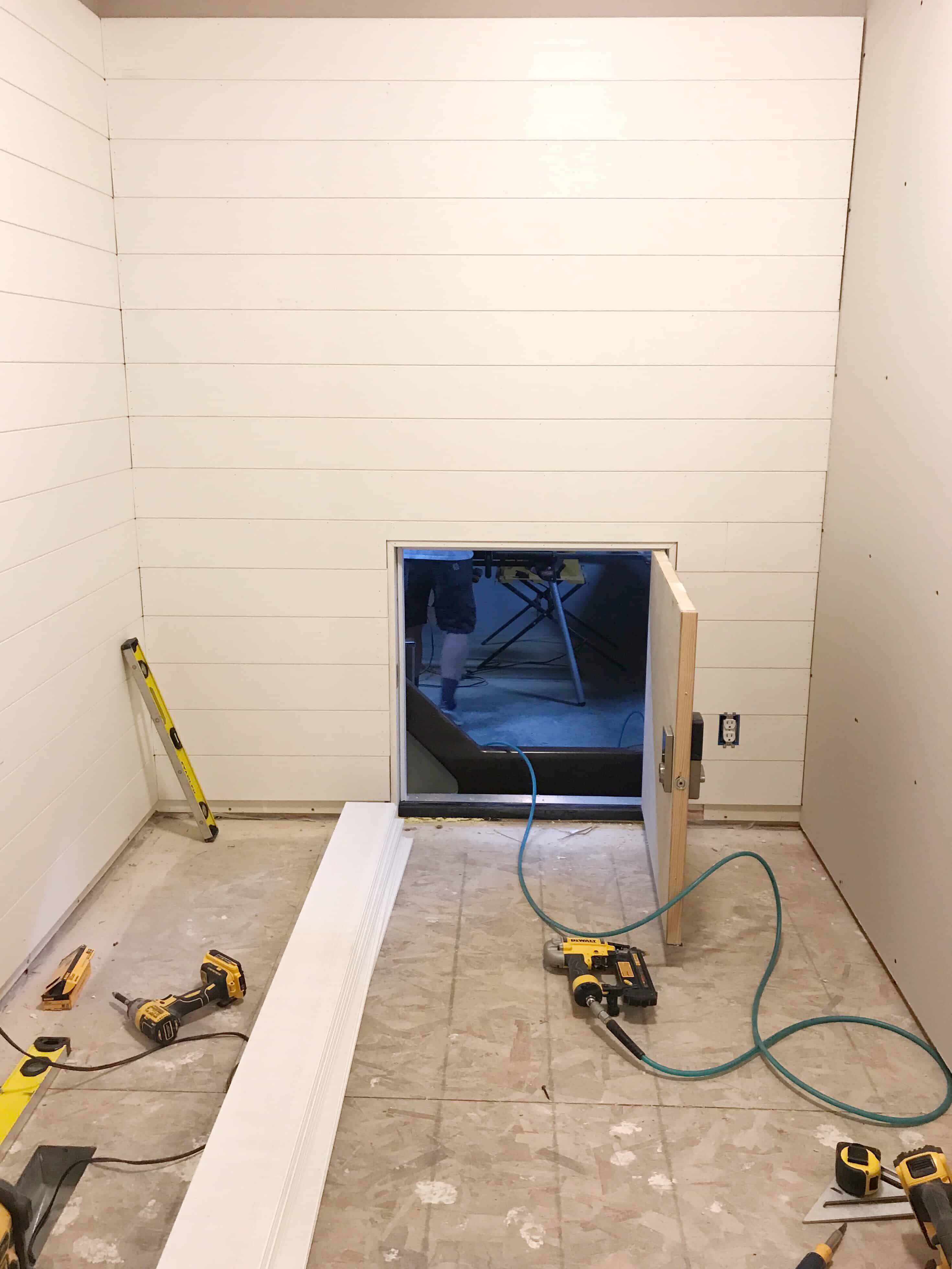I can’t tell you how many hours I have spent on Pinterest designing this little space. Pantry organization is a BIG priority for me. If you saw pictures of my previous pantry, you can understand why… such a mess! I will do a post of final dimensions when it is complete. We are still figuring it all out as we go. I managed to talk my hubby into shiplap on the walls to save him from days of sheetrock repairs… I’m sneaky. I love how it turned out!