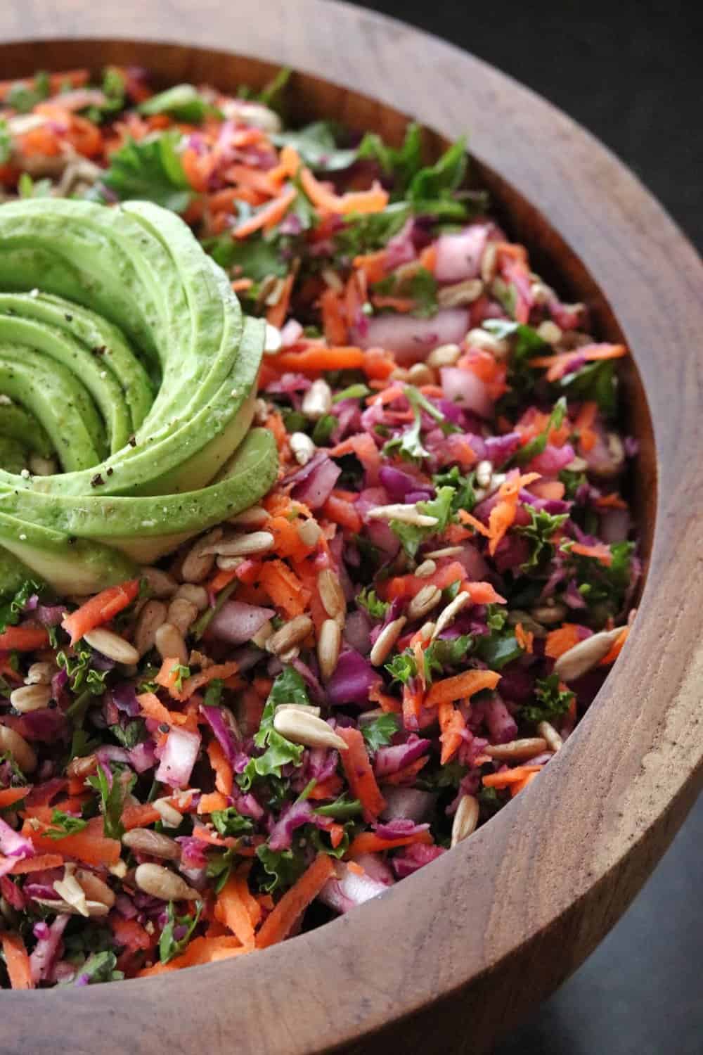- 1/4 cup avocado oil plus 1 tbsp to massage kale